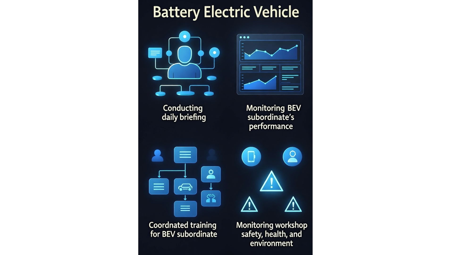 The learning outcomes of this competency are to enable the trainees to manage conducive work environment, disciplined and knowledgeable workers with regards to quality and productivity in accordance with company objectives and targets. Upon completion of this competency unit, trainees should be able to: 1. Conduct BEV daily briefing. 2. Monitor BEV subordinate’s performance. 3. Coordinate BEV subordinate’s training. 4. Monitor BEV workshop safety, health & environment.
